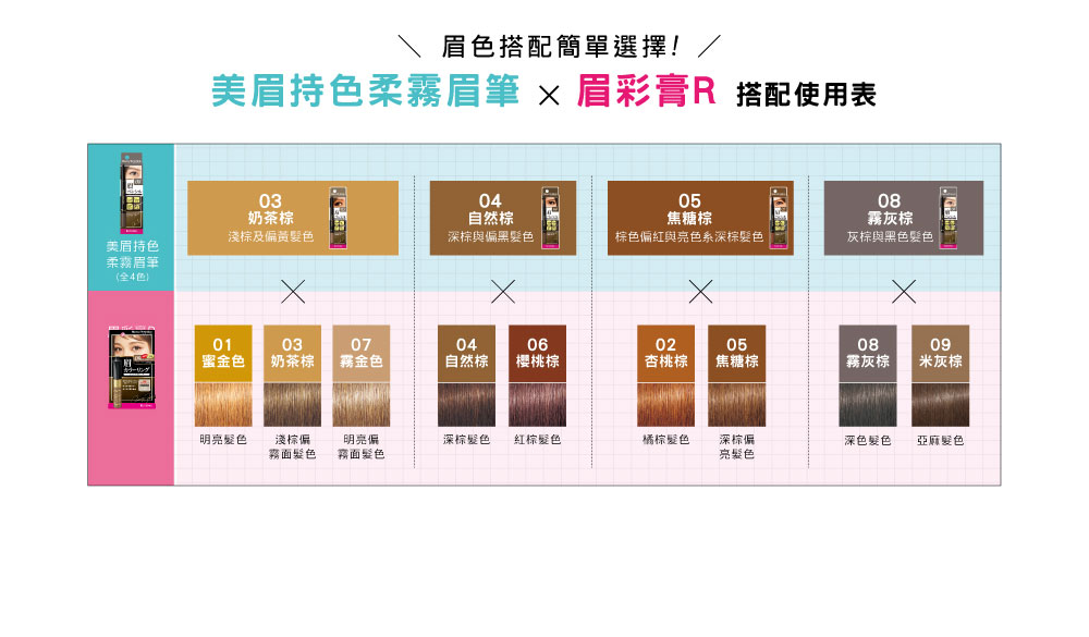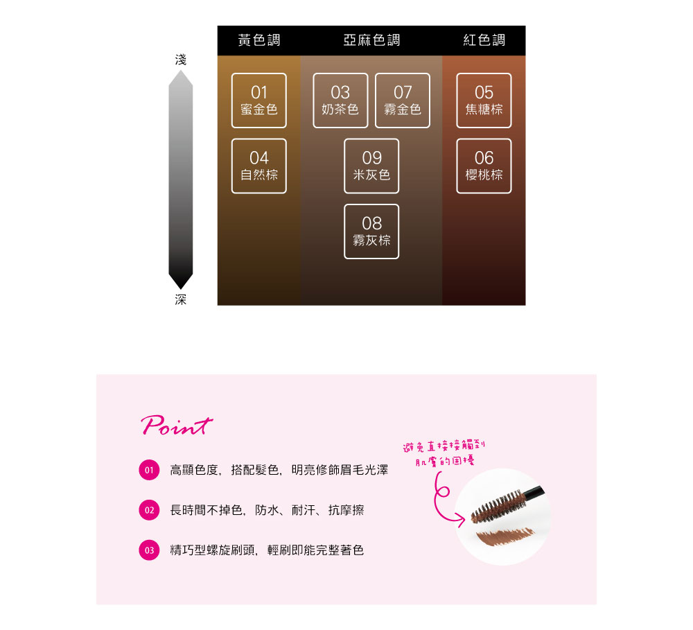 改变明亮眉色,配合发色,让眼妆效果更加自然。